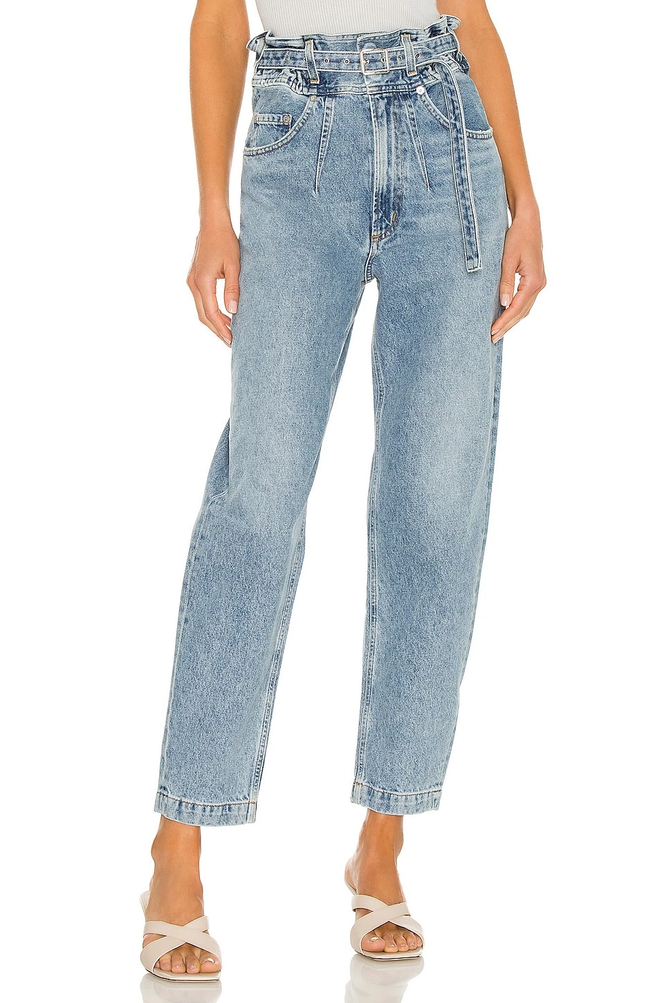 - Elastic paperbag waist with detachable belt