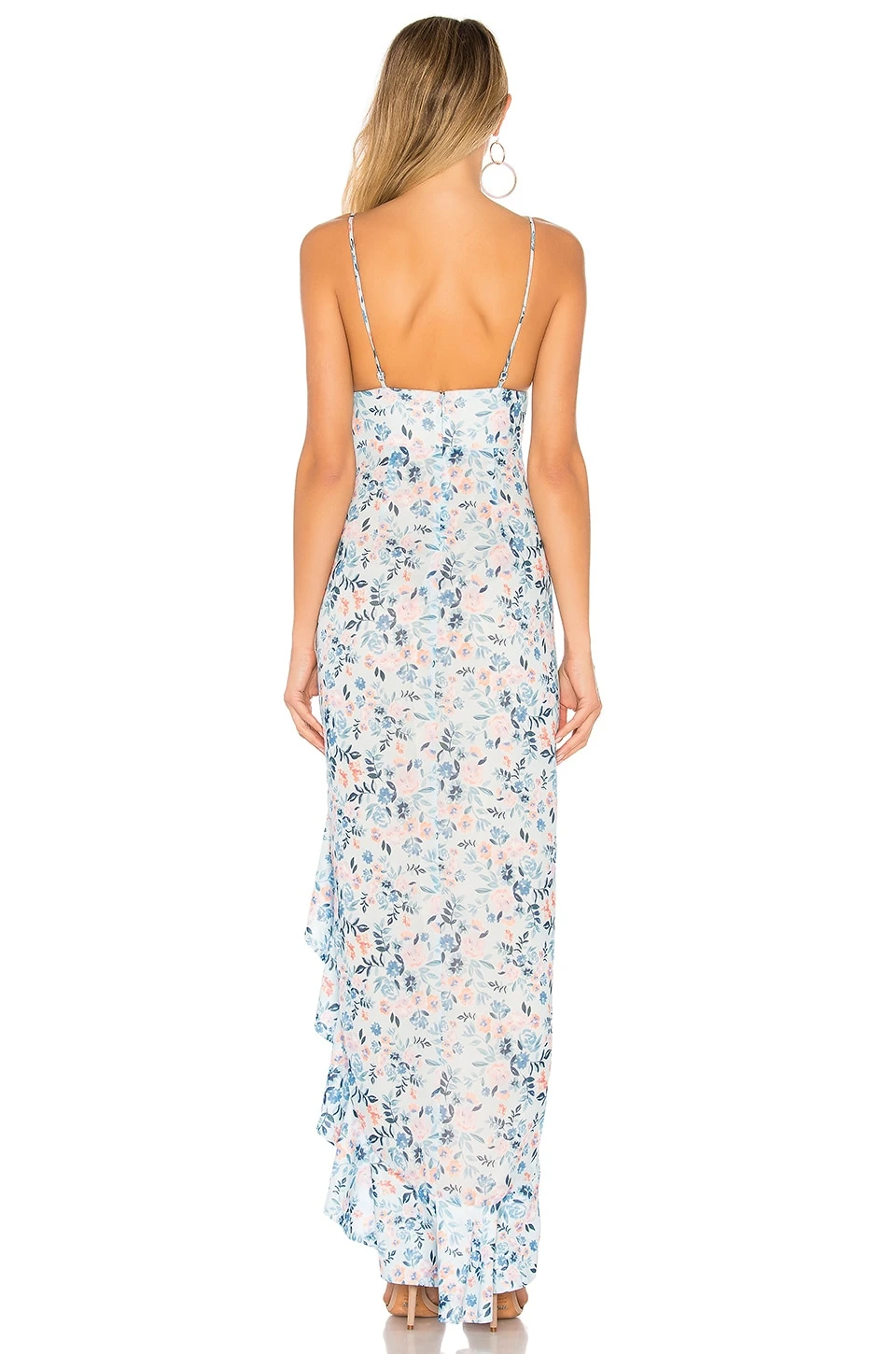 - Your next soiree deserves something extravagant: Lovers + Friends Ahamani Gown. Putting you at the center of attention, this hi-low dress is accented with a cascading ruffled trim that allows you to show off your favorite heels.