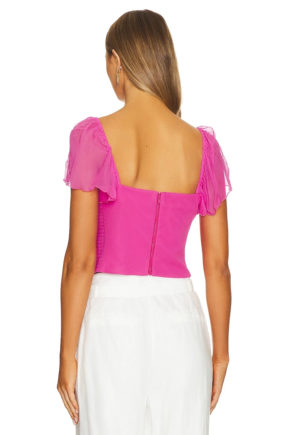 - Exposed back zipper closure