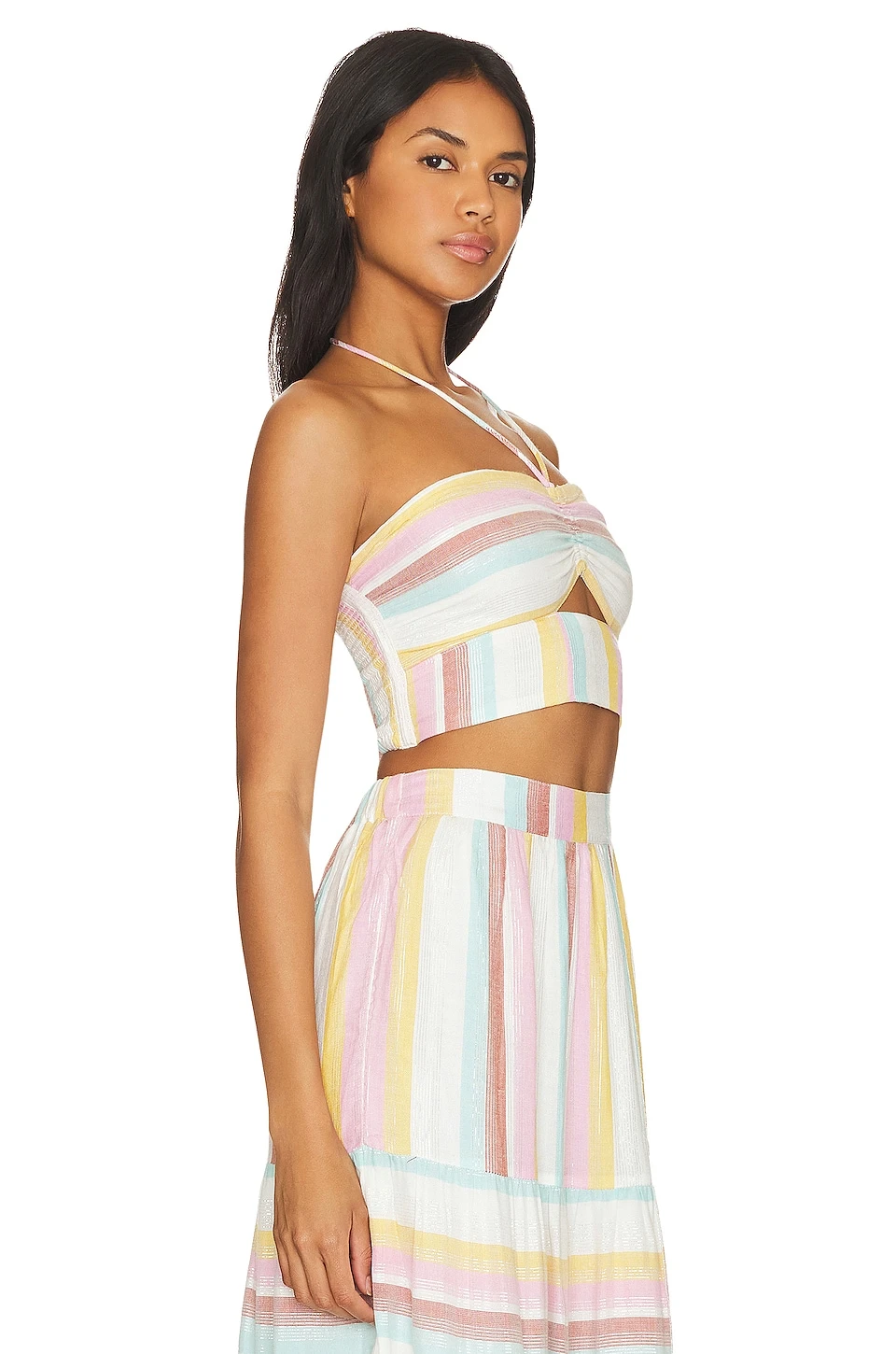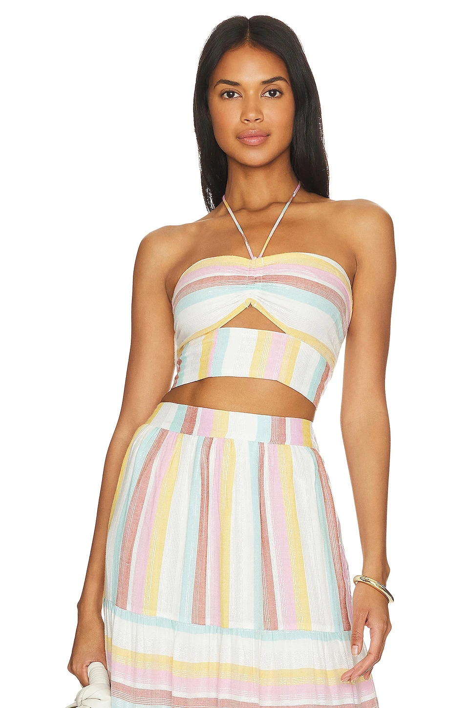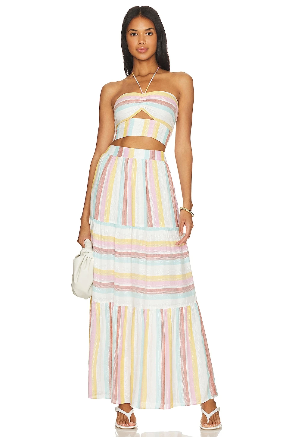 Self: 99% viscose, 1% metallic.Lining: 96% cotton, 4% lyocell. Made in India. Hand wash. Halterneck tie closure. Front cut-out detail. Smocked back. Metallic threading throughout. Item not sold as a set. Revolve Style No. LSPA-WS99. Manufacturer Style No. BSKTP23.