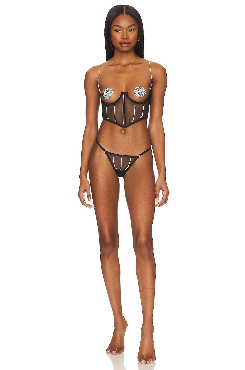 - Please note: Rhinestone embellished pasties are not included
