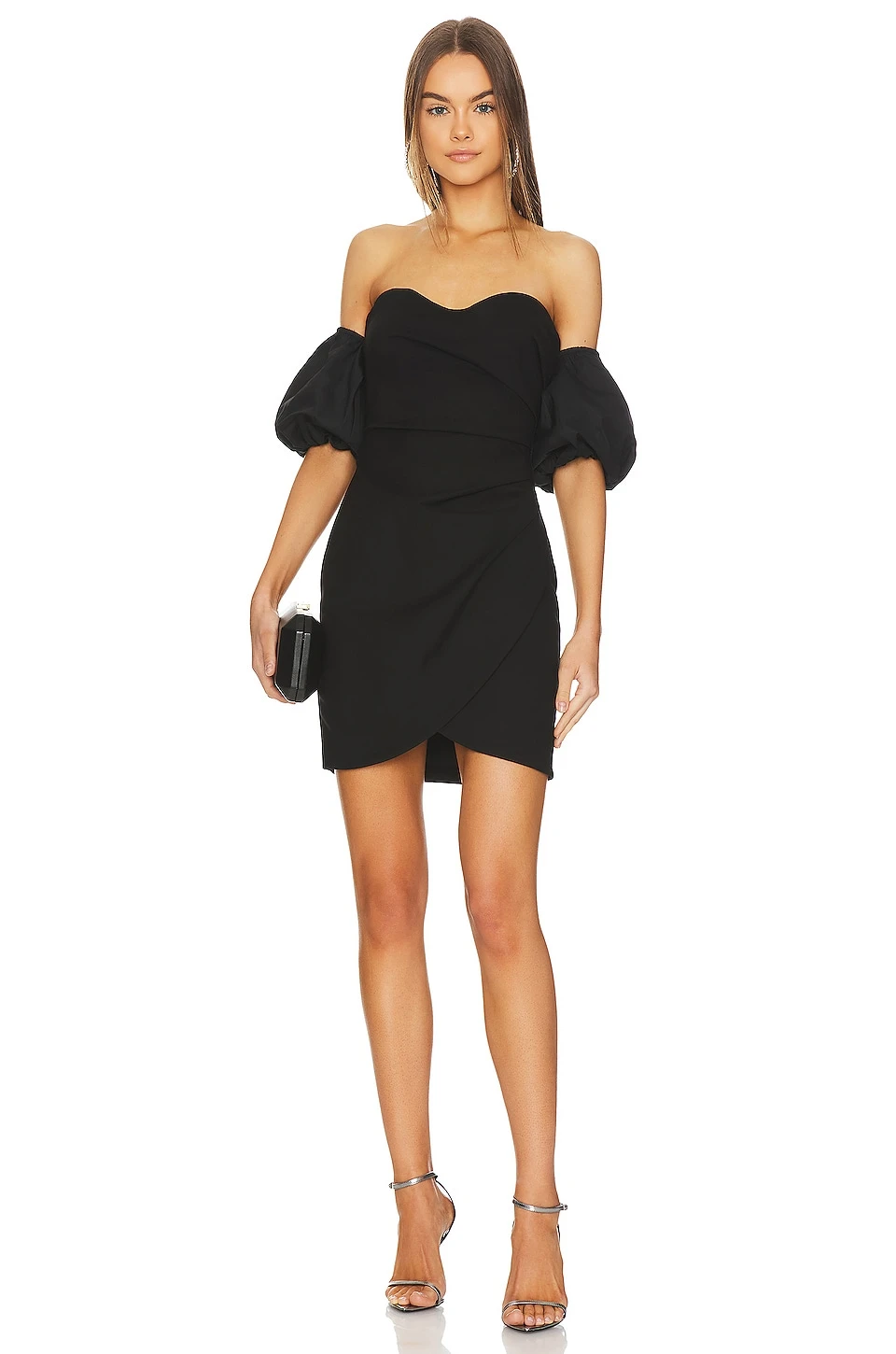 Puff off shoulder sleeves with elastic cuffs - Ruched crepe fabric