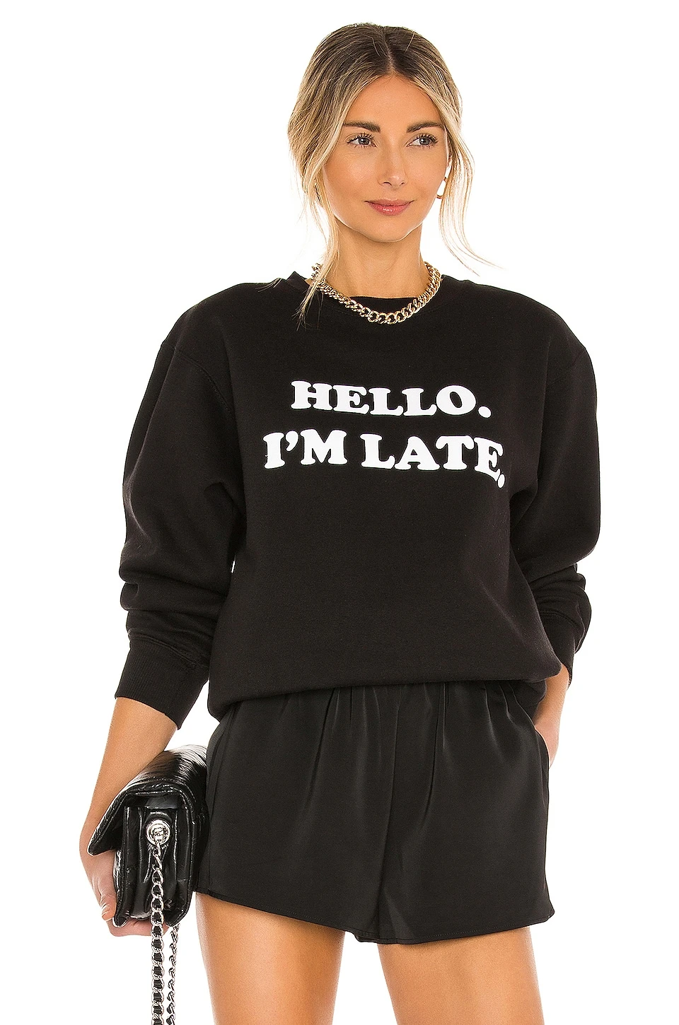 Be the first to review “Hello I’m Late Sweatshirt Black” Cancel reply