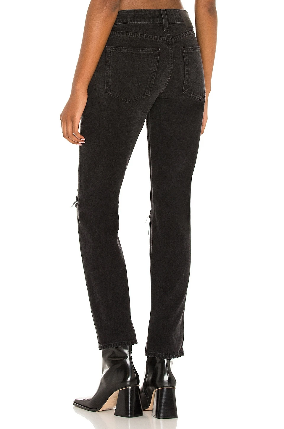 Intentionally distressed areas - 13″ at the knee narrows to 11″ at the leg opening