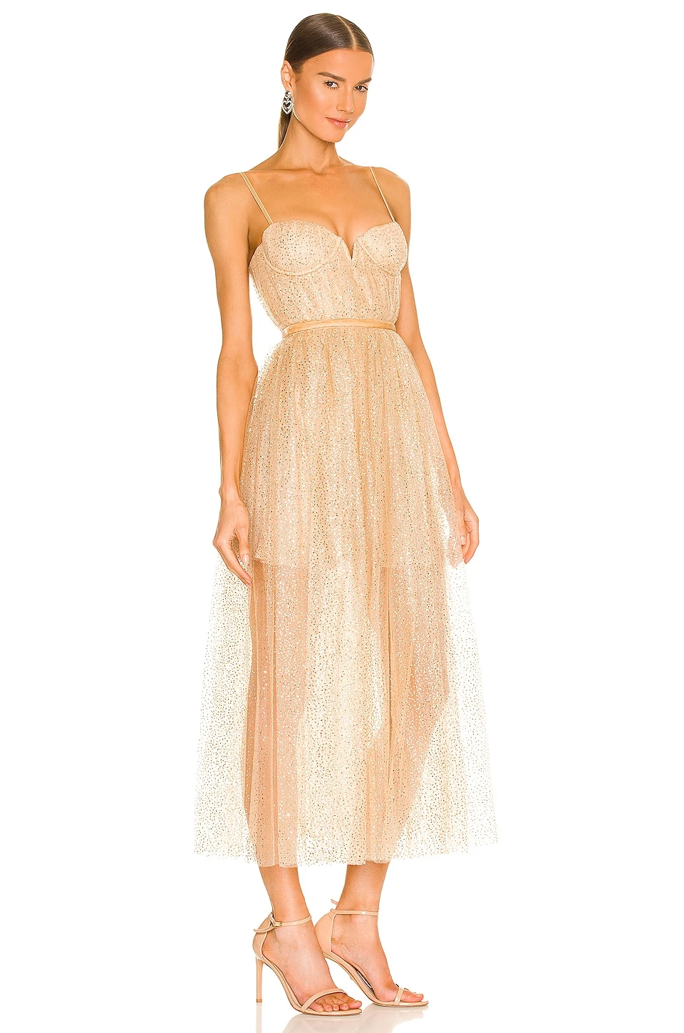 Flocked adjustable shoulder straps - Sheer tulle fabric with glitter polka dot detail throughout
