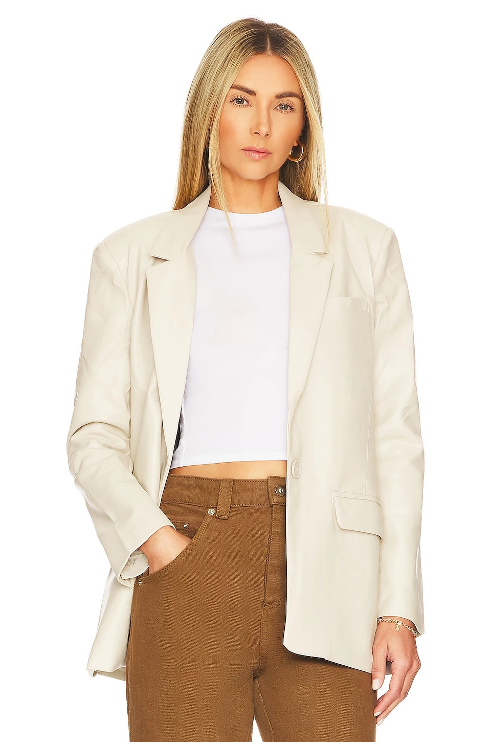 - Singular front button closure