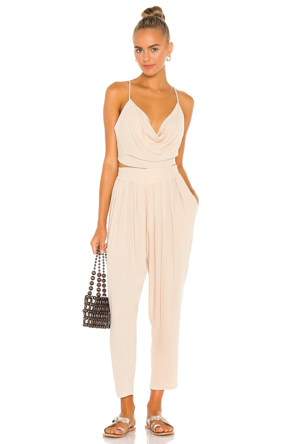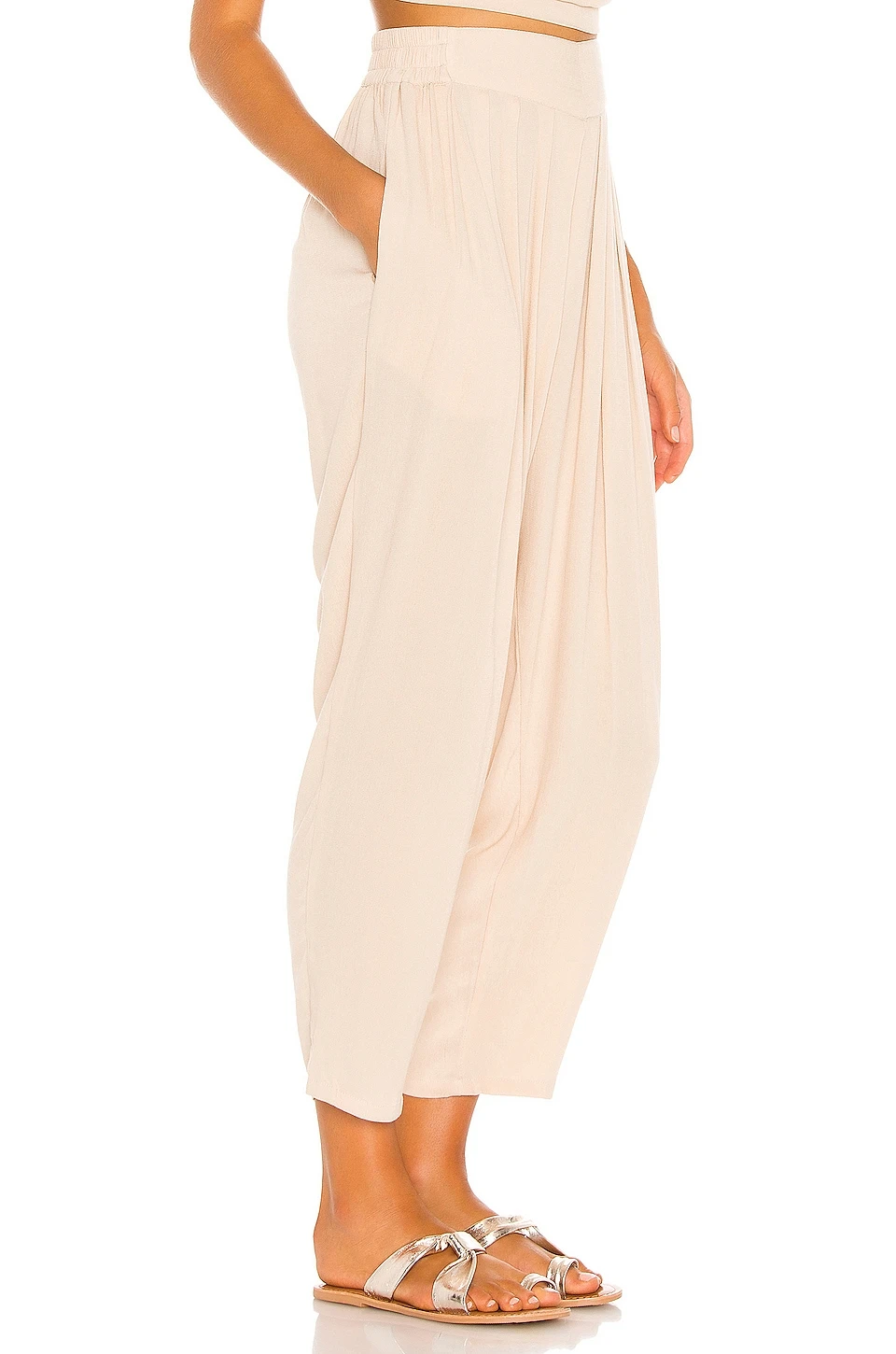 - Pleated fabric detail at waist