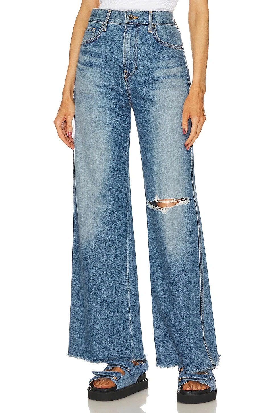 Intentionally destroyed areas throughout - 21″ at the knee breaks to 24″ at the leg opening